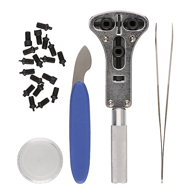 I detta verktygsset fr klockor finner du alla ndvndiga verktyg fr att reparera eller utfra en enklare service p din klockaDet r viktigt att anvnda rtt verktyg nr du ska reparera ditt fickur eller armbandsur annars kan det sluta med att du nd fr lmna ver. Demontering av urverket rengring byte av slitna och trasiga delar hopmontering oljning reglering och kontroll av samtliga funktioner och. Nu slipper du betala hga kostnader fr att exempelvis frkorta en lnk eller byta batteri p din klocka.